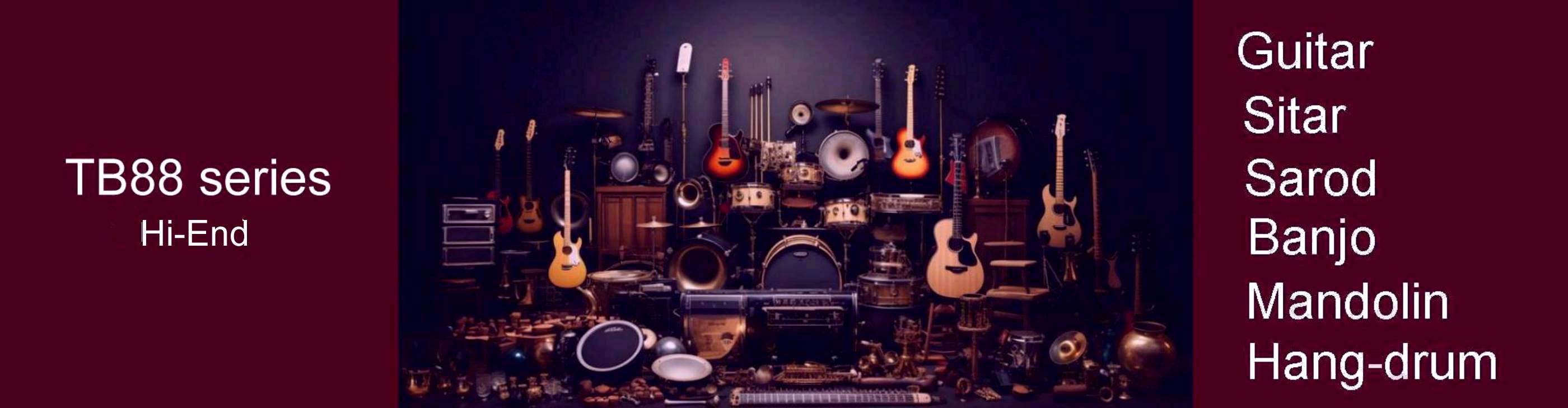 plucked and bowed string instruments such as cello, double bass, even sitar and other exotic instruments with